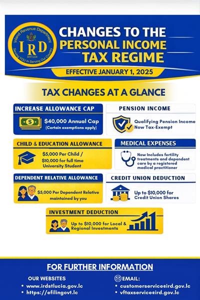 For further information or clarification, please contact the IRD at: 468-4700 or email customerservice@ird.gov.lc or visit our website www.irdstlucia.gov.lc